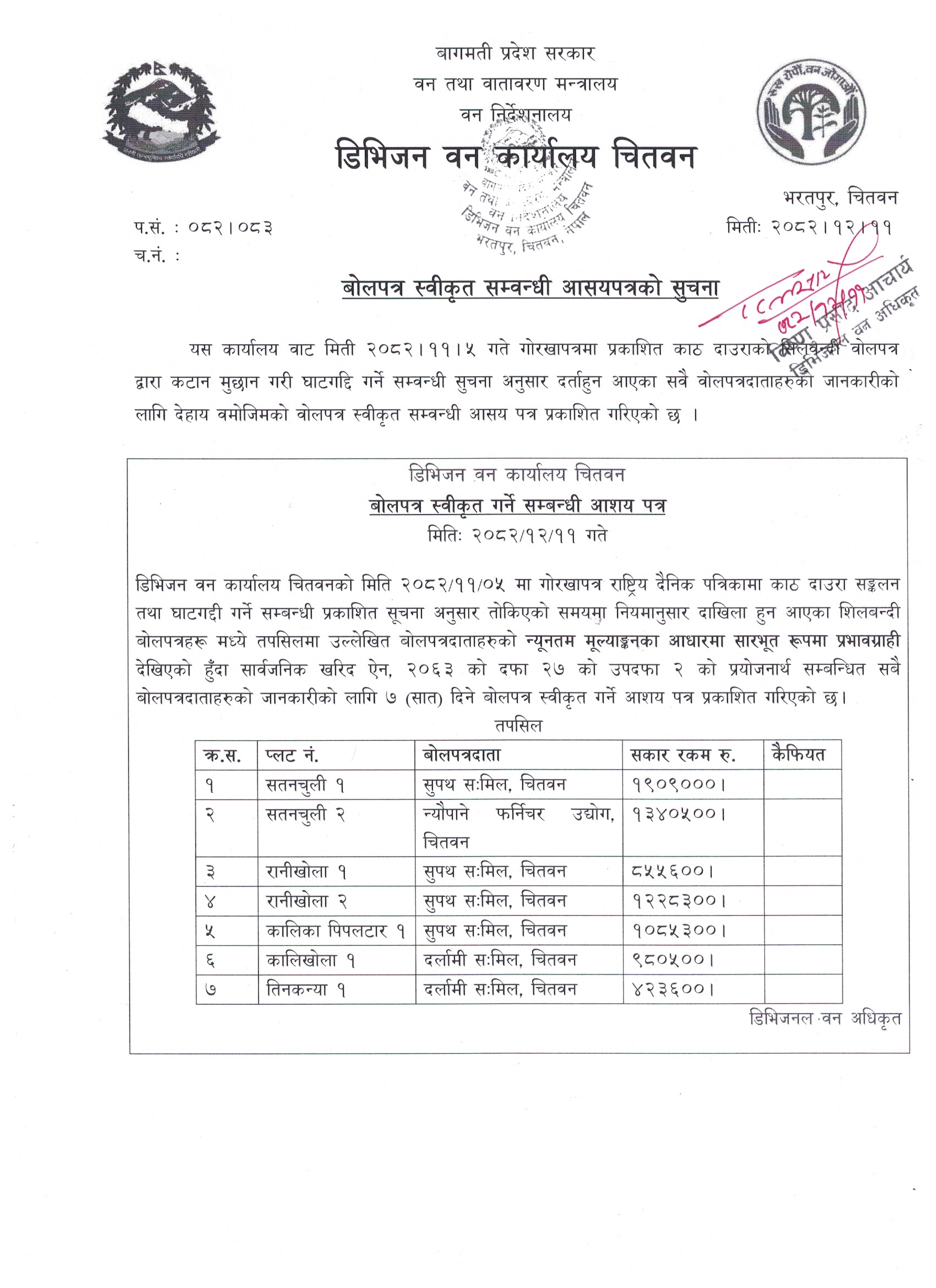 २०८२-१२-१० काठ दाउरा लिलाम बिक्री सूचना