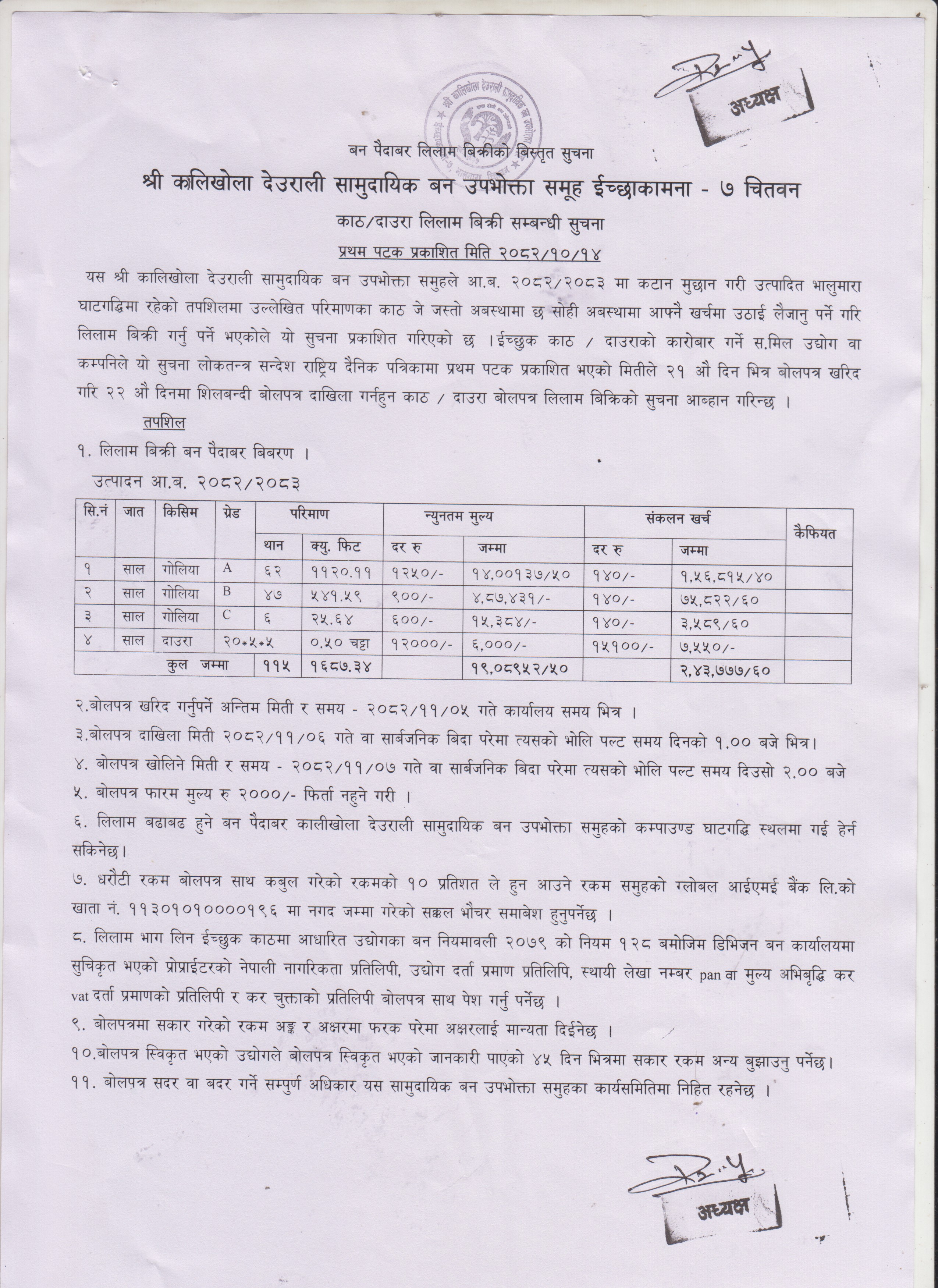 २०८२-१२-१० काठ दाउरा लिलाम बिक्री सूचना